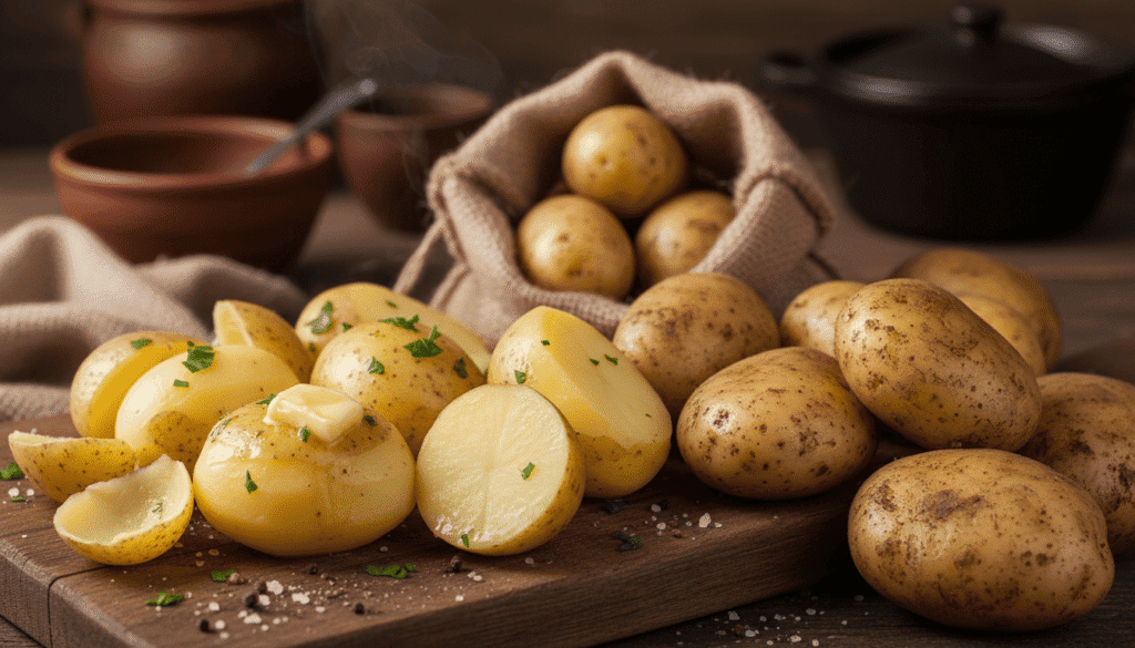• 효능: 감자의 녹말 성분은 위벽을 코팅하여 보호막을 형성합니다. 또한 비타민 C가 풍부하여 면역력을 높여주며, 감자의 비타민 C는 익혀 먹어도 영양소 파괴가 적다는 장점이 있습니다.